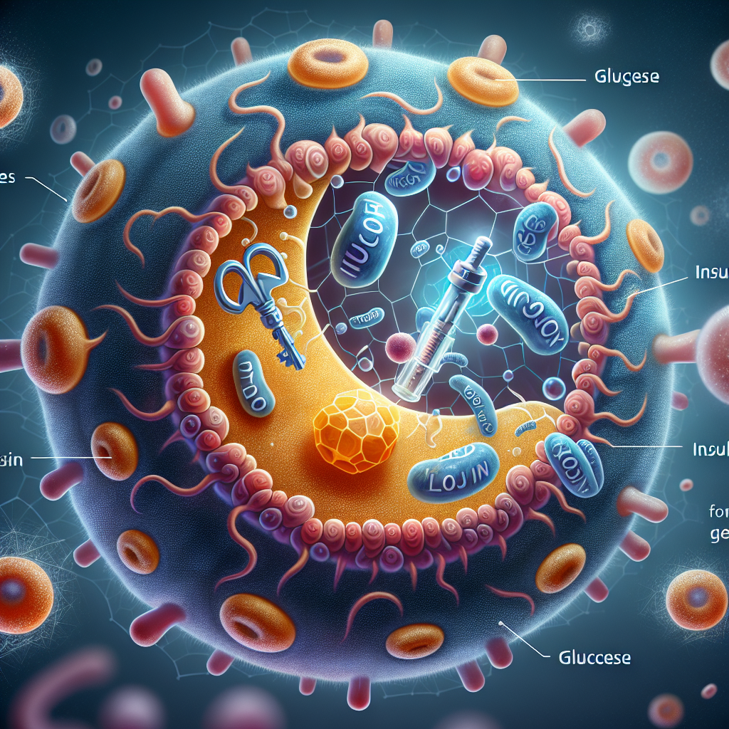 Insulin wirkt, indem es an spezifische Rezeptoren an der Oberfläche von Zellen bindet, was die Aufnahme von Glukose aus dem Blut in die Zellen ermöglicht. Dies ist besonders wichtig für Zellen, die auf Glukose als Energiequelle angewiesen sind, wie zum Beispiel Muskel- und Fettzellen. Insulin stimuliert auch die Leber, Glukose zu speichern und zu verarbeiten, was dazu beiträgt, den Blutzuckerspiegel zu senken.
